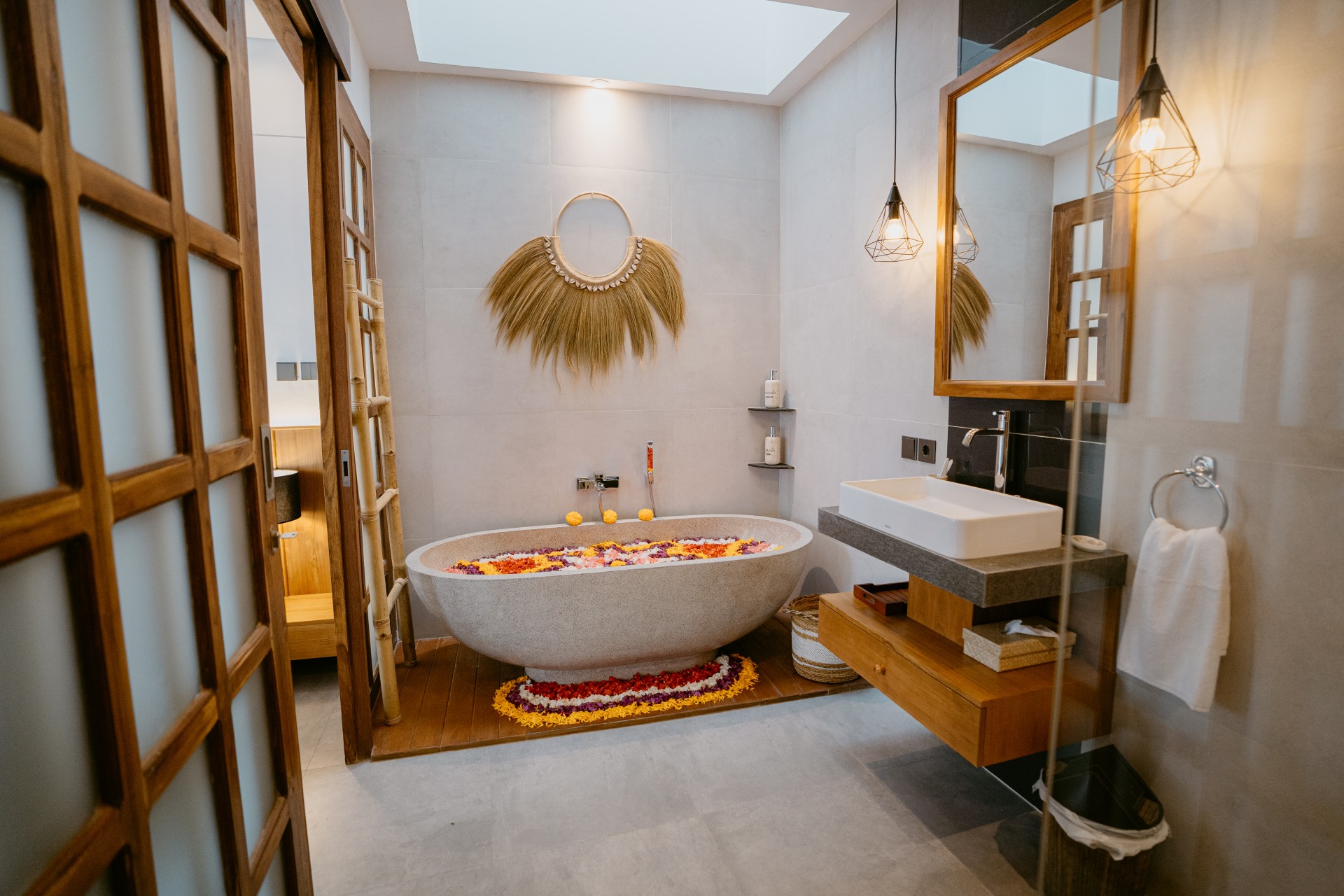 This villa boasts a private pool surrounded by lush greenery, creating the perfect setting for a relaxing swim or some quiet relaxation. The bathrooms boast elegant designs, offering a luxurious retreat after exploring Ubud. Ideal for couples, families, or friends, Dharman Villa Ubud offers privacy and comfort, just minutes from Ubud’s cultural attractions.