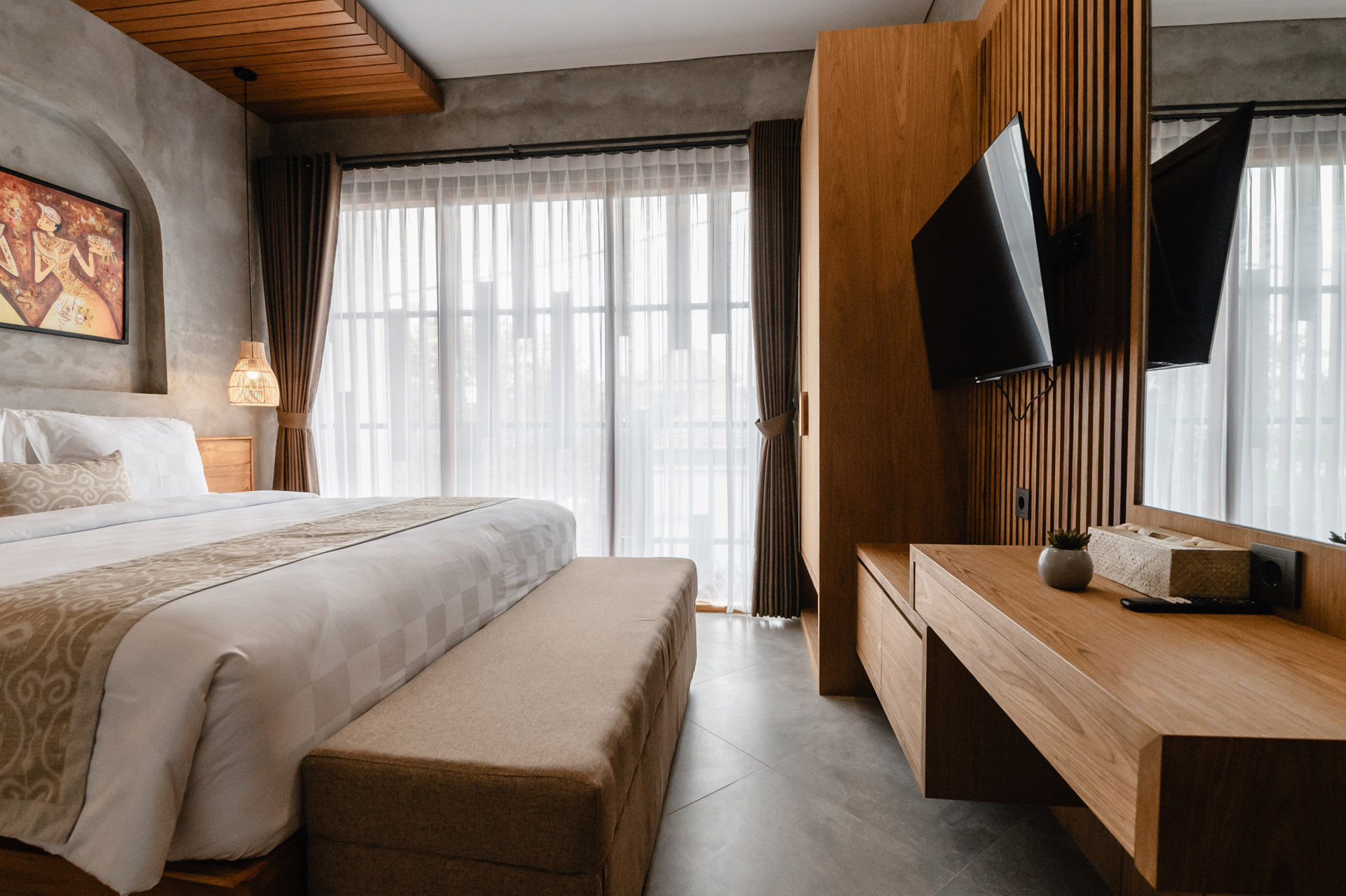 The Studio Deluxe Room is designed with warmth and elegance, offering cozy interiors that create a relaxing for every guest. The room features a comfortable bed, a modern ensuite bathroom with premium amenities, and all the essential facilities needed for a pleasant stay. Air conditioning, high-speed Wi-Fi, and a flat-screen television ensure convenience, while complimentary toiletries and daily cleaning service add an extra touch of care.
